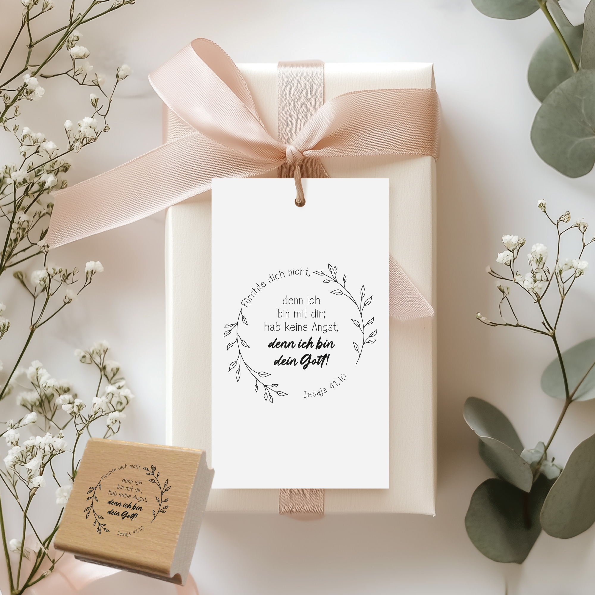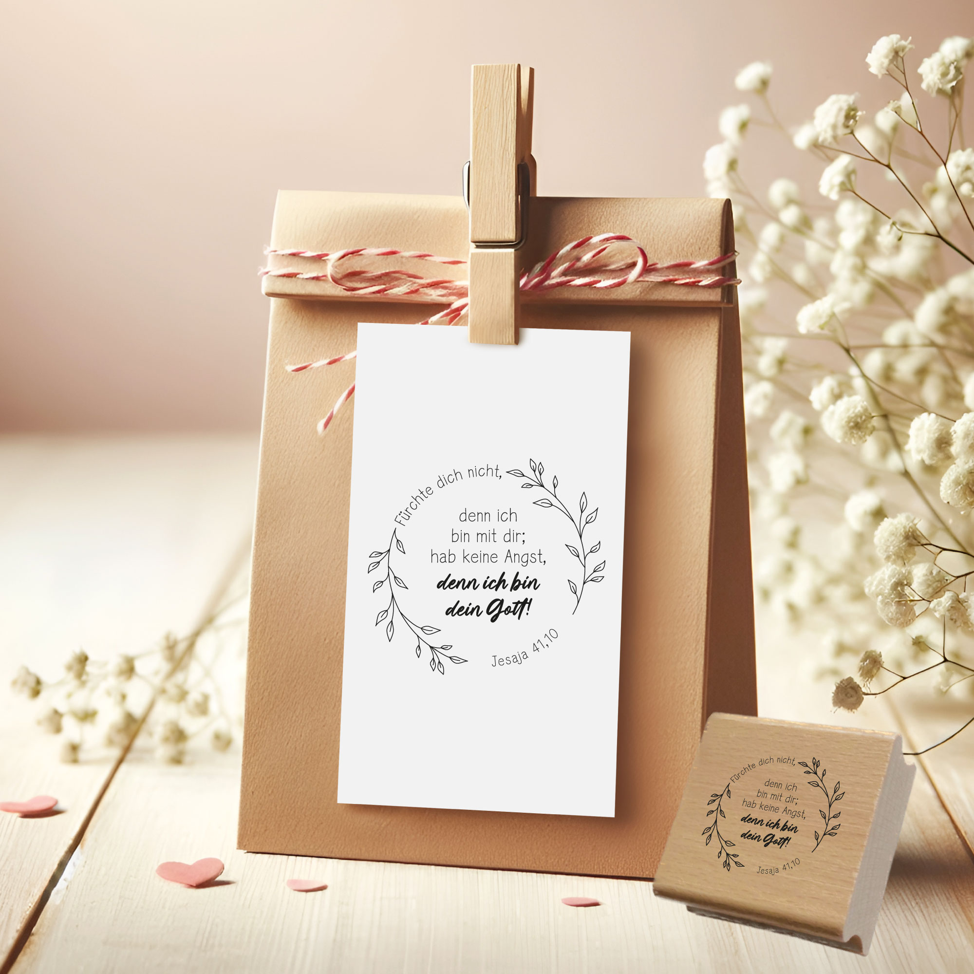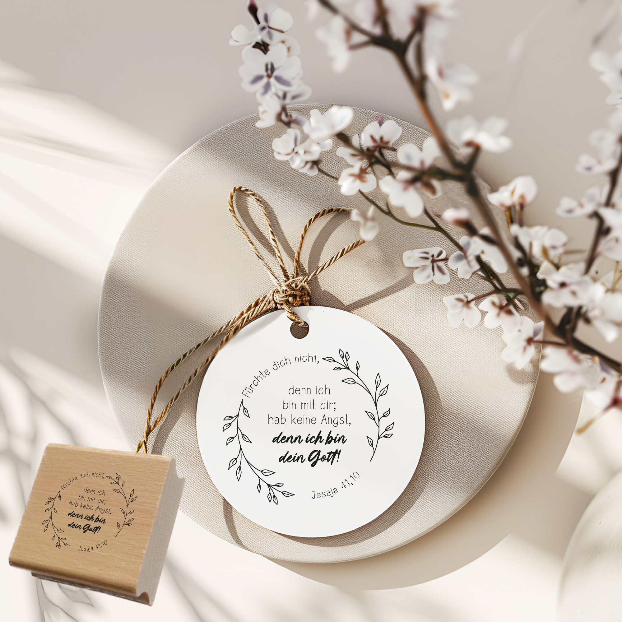Stempel Jahreslosung 2027 "Fürchte dich nicht, denn ich bin mit dir" Jesaja 41,10 | Kranz