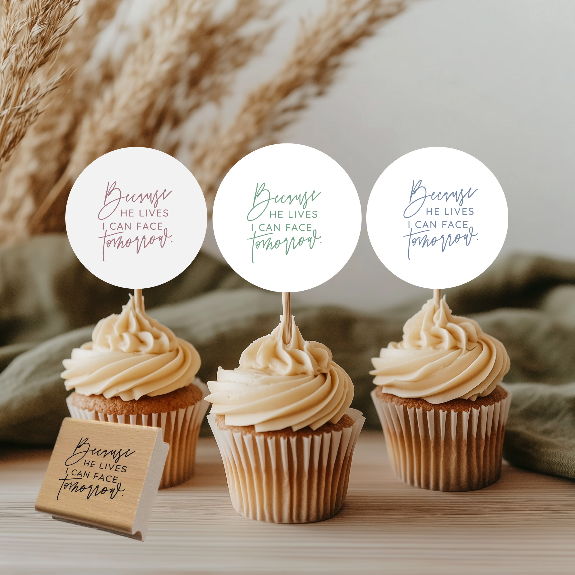 Segensstempel "Because He lives I can face tomorrow" – Christlicher Stempel | Englisch